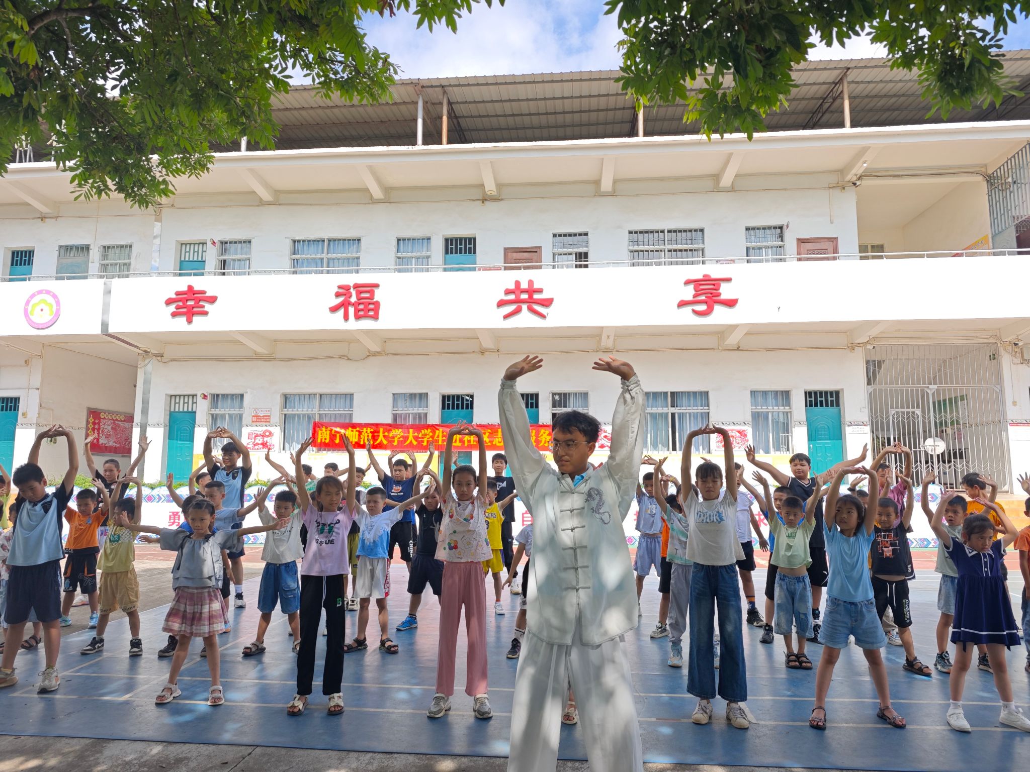 “践行振兴”实践团到坛泽小学开展“八段锦”健身志愿服务活动,为坛泽小学的师生们传播科学健身知识、传授健身技能。