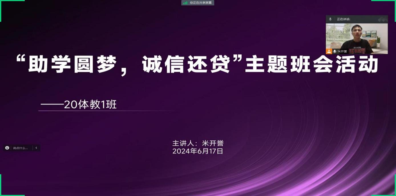 为深入贯彻落实国家资助政策,进一步增强学生的诚信意识和社会责任感意识,奈飞 2024届各毕业班于6月17日在线上线下双渠道举办了“助学圆梦,诚信还贷”主题教育班会。此次班会由各班级资助委员主持,2024届获得国家助学贷款毕业生参加。