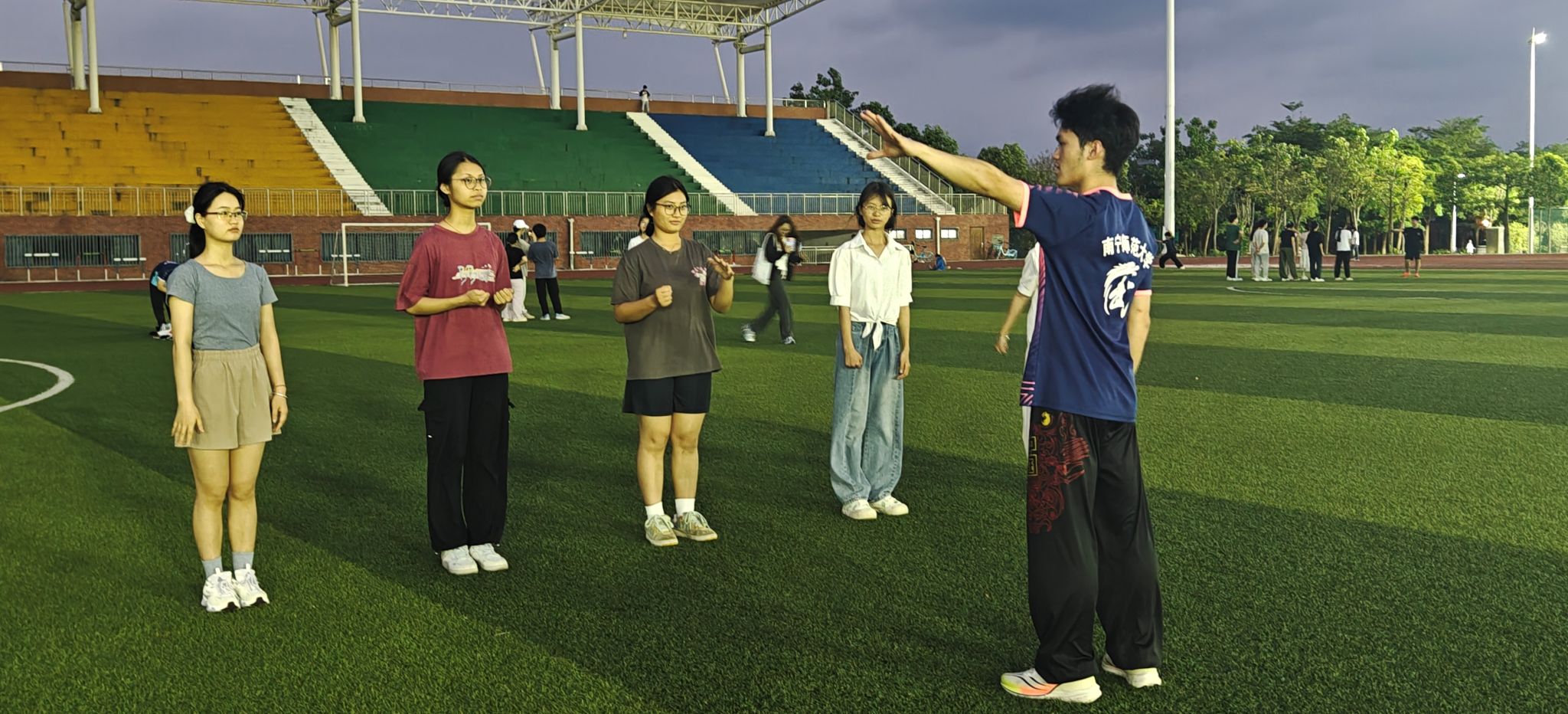 夏夜繁星闪烁,操场灯火通明,松园田径场化身为武术课堂。本次武术夜校教练团队由武术协会学生组成,结合趣味教学法,将八段锦的舒缓柔美与五步拳的刚劲利落融入课程,通过口诀记忆、分组比拼等方式,让零基础学员快速掌握动作要领。活动过程还融入健身知识科普、运动损伤防护技巧等内容,帮助学员们科学锻炼。训练过程中,学员们手持夜光器械,一招一式在灯光下整齐划一,展现出学习武术的顽强精气神,成为校园独特的文化风景线。“从手脚不协调到能完整打出套路,武术让我变得更自信!”许多学员因此次武术夜校结缘,组建起“夜练小分队”,发挥交流平台作用。