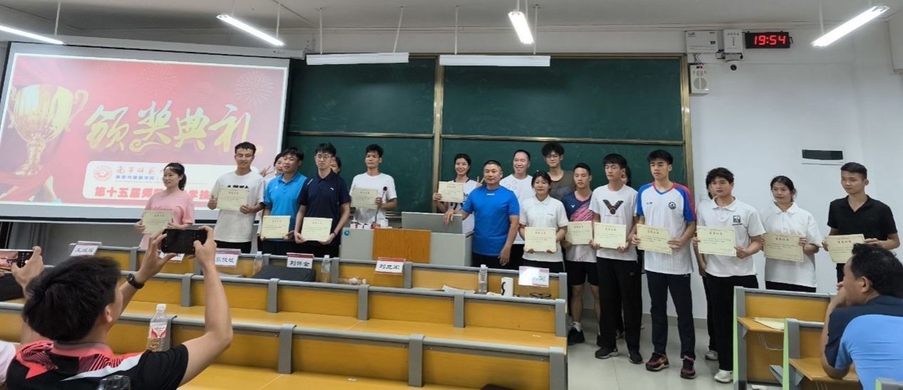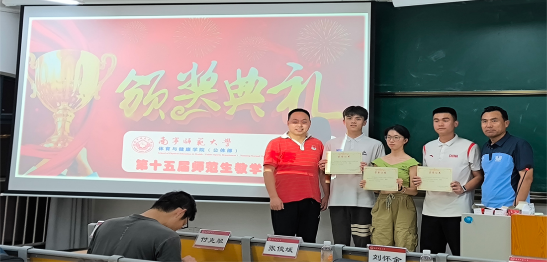 本次师范生教学技能大赛经过几个小时的激烈角逐和评委们的认真评审,最终评选出了一等奖、二等奖和三等奖,评委分别为获奖选手颁发了荣誉证书,并与选手们合影留念。最终2021级陆晖健同学荣获初中组教学技能大赛一等奖,2022级伍南舟同学荣获高中组教学技能大赛一等奖,2023级研究生汤玉琦获得研究生组一等奖。评委组一致同意由陆晖健、伍南舟同学代表学院参加奈飞