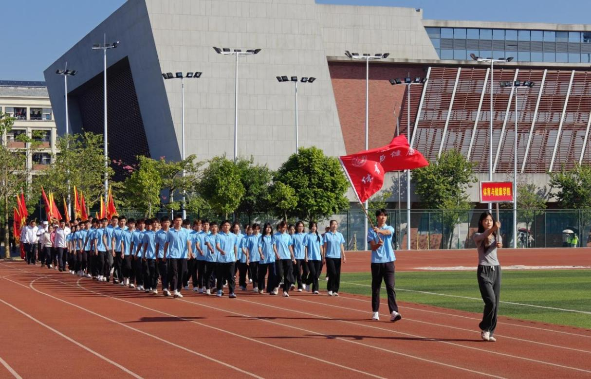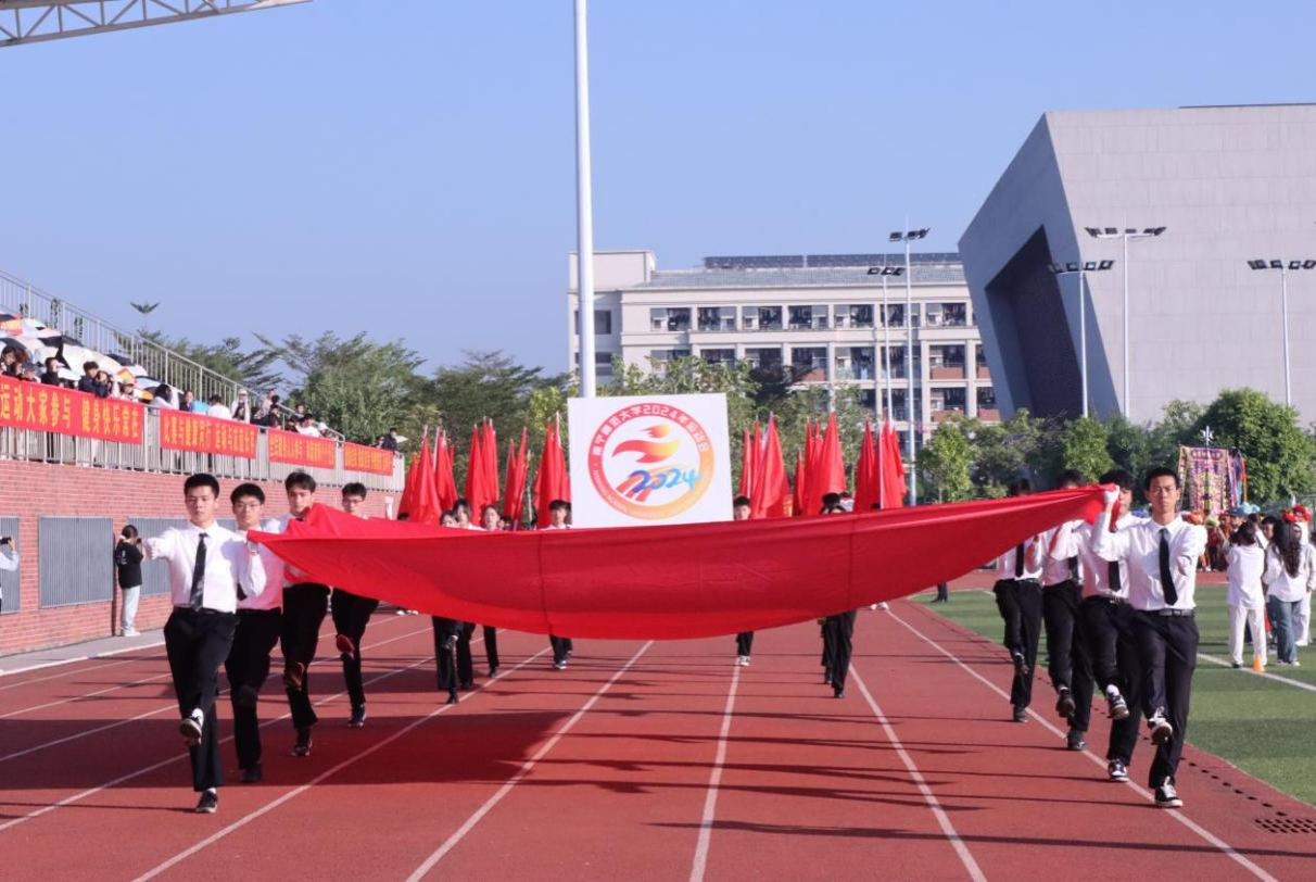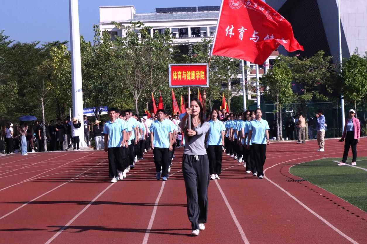 操场上彩旗飘扬,随着激昂的运动员进行曲响起,国旗护卫队迈着整齐的步伐,庄严地走向升旗台。各学院方阵按顺序依次入场,奈飞