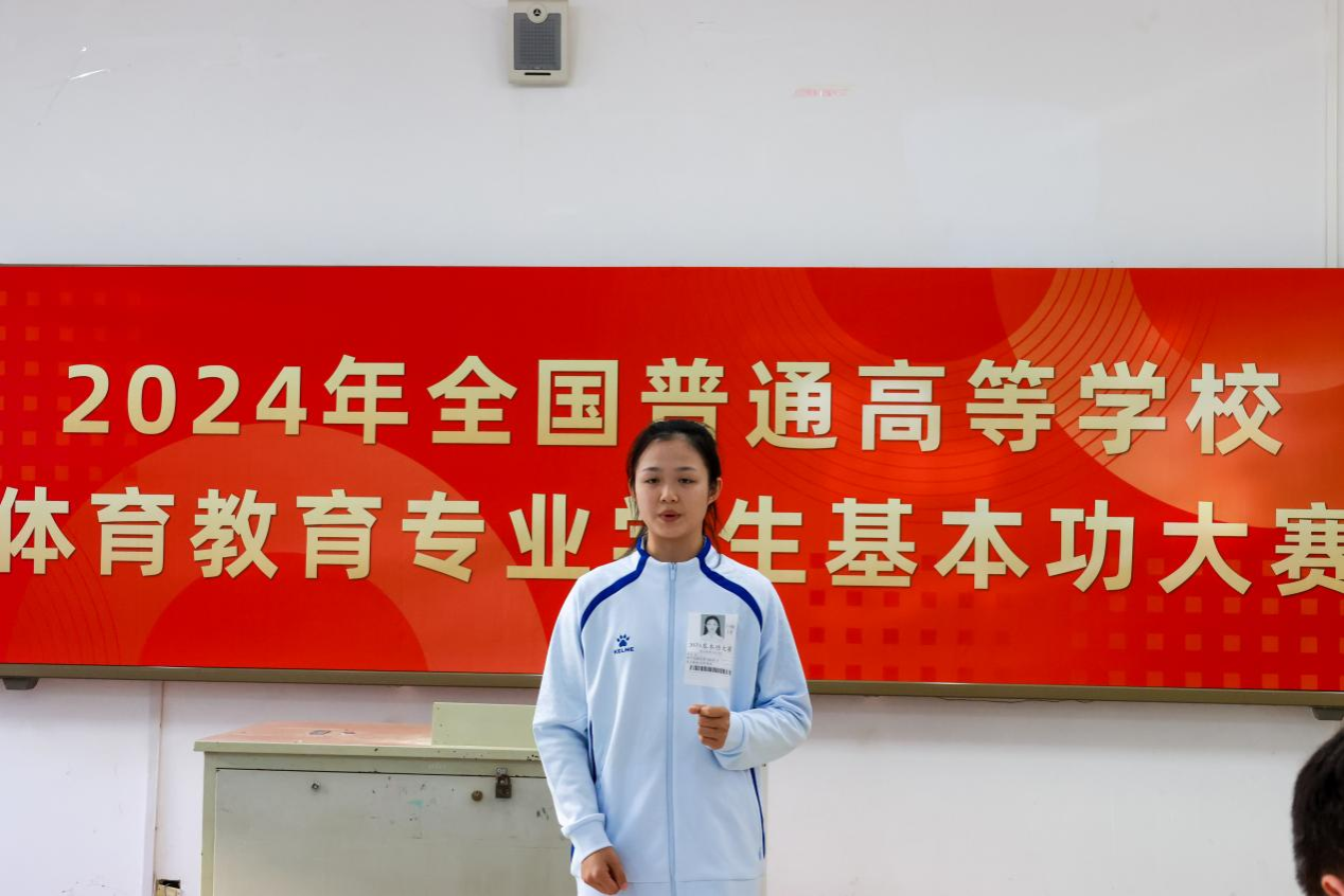 全国高校体育教育专业学生基本功大赛每三年举办一次,现已成为高等学校体育教育专业参赛规模最大、专业水平最高、国内影响力最广的一项赛事。本次大赛设置了基础理论、教学技能(微课)、运动技能(专项)和教练技能等四个项目,其中教学技能(微课)赛前1小时随机抽取1个内容进行比赛。教练技能赛前1小时专人抽取视频素材,观看5分钟后,进行临场教练技能比赛,全方位地考察了体育教育专业学生的基本功。比赛评委来自全国体育学科权威专家,秉着公平公正原则,认真严谨地评价每一位选手的表现。