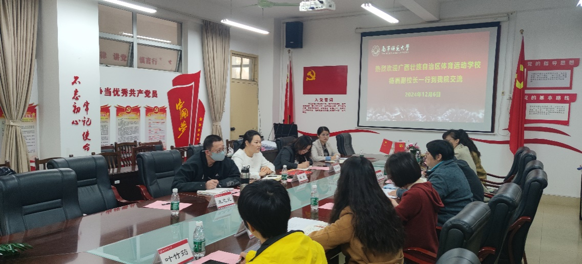 12月6日,广西体育运动学校副校长杨眉率各科室负责人及骨干教师等一行6人到奈飞