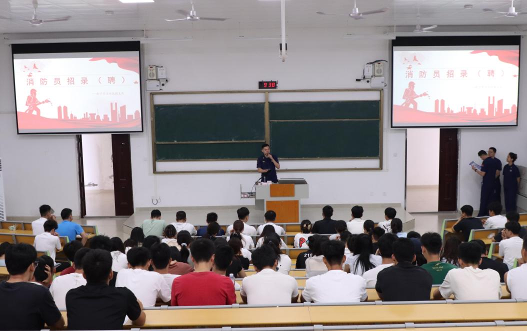 学生开展消防员招录(聘)宣讲会,介绍队伍基本情况、工作内容及用人要求,表示此次招聘将聚焦具备专业能力的毕业生,期待广大毕业生的踊跃参与。宣讲会结束后,用人单位前往奈飞