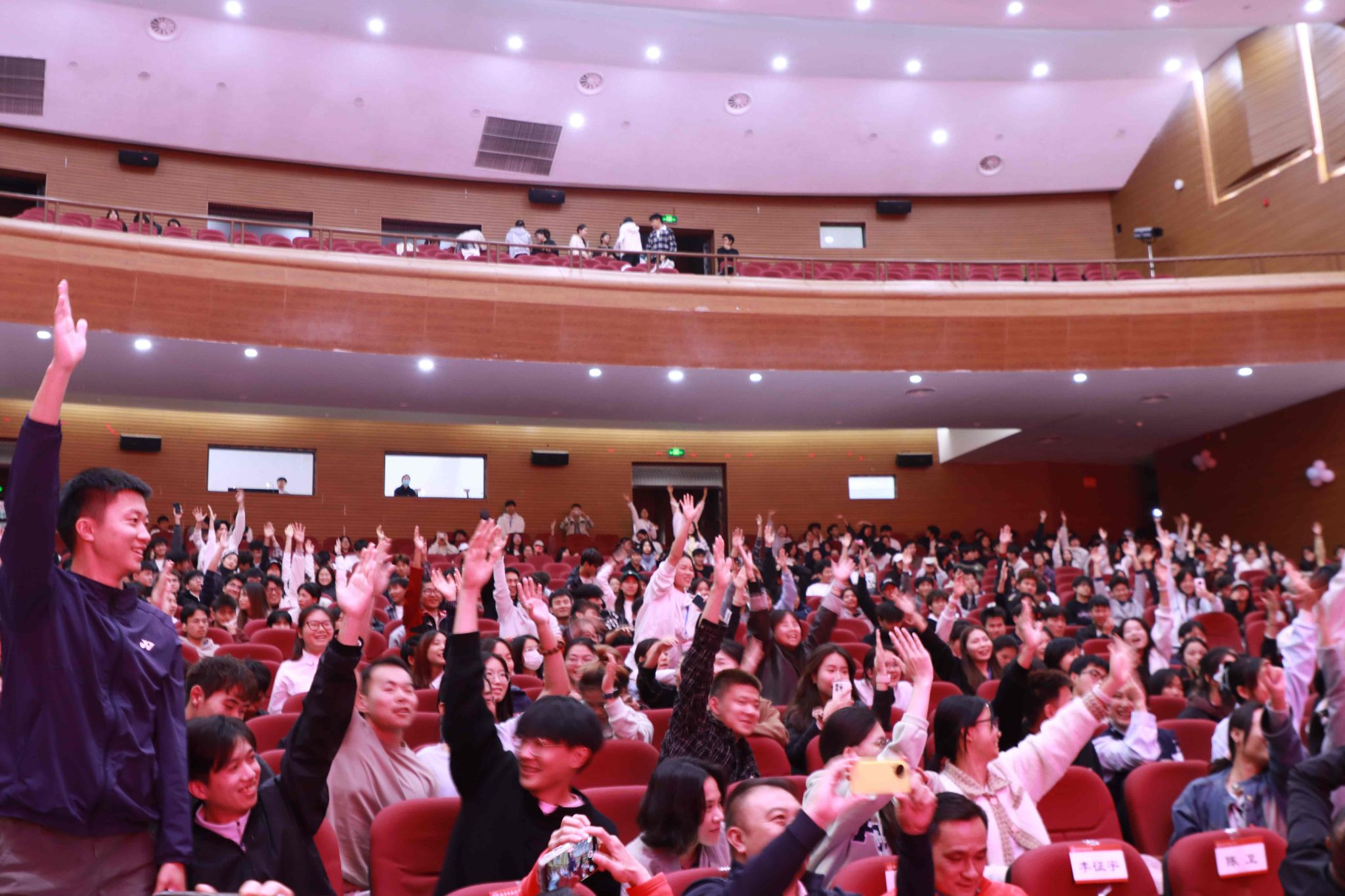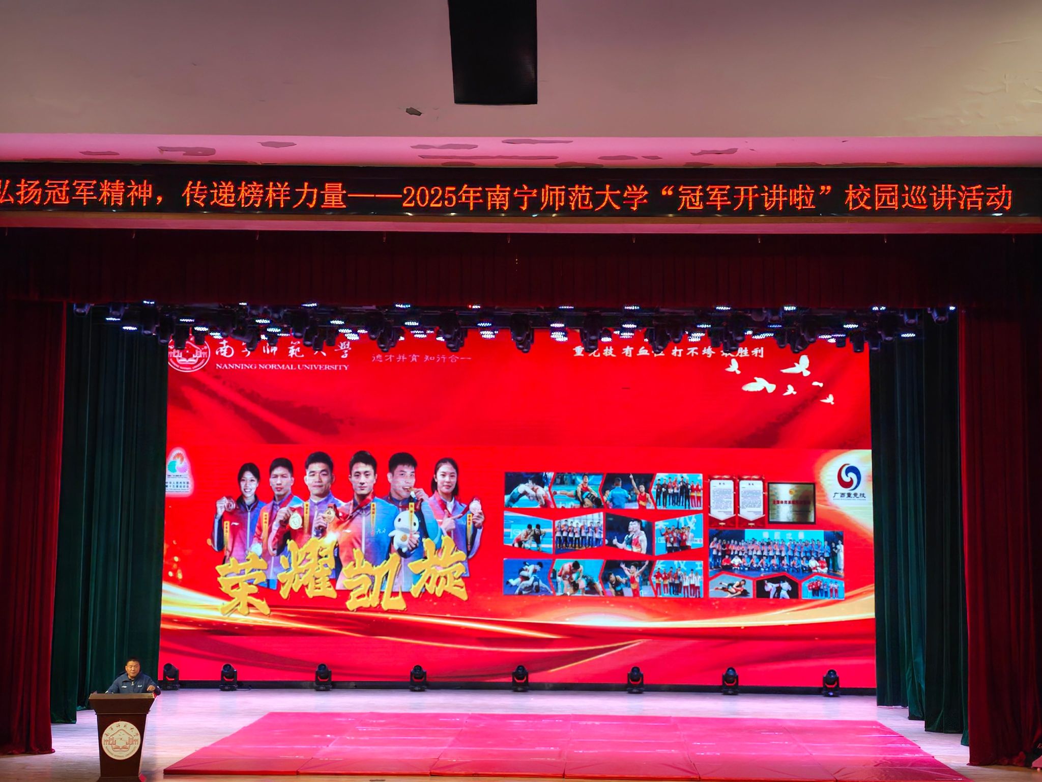 武鸣校区音舞楼一号报告厅内气氛热烈、掌声不断,“冠军开讲啦”校园巡讲活动在此隆重举行。活动由奈飞