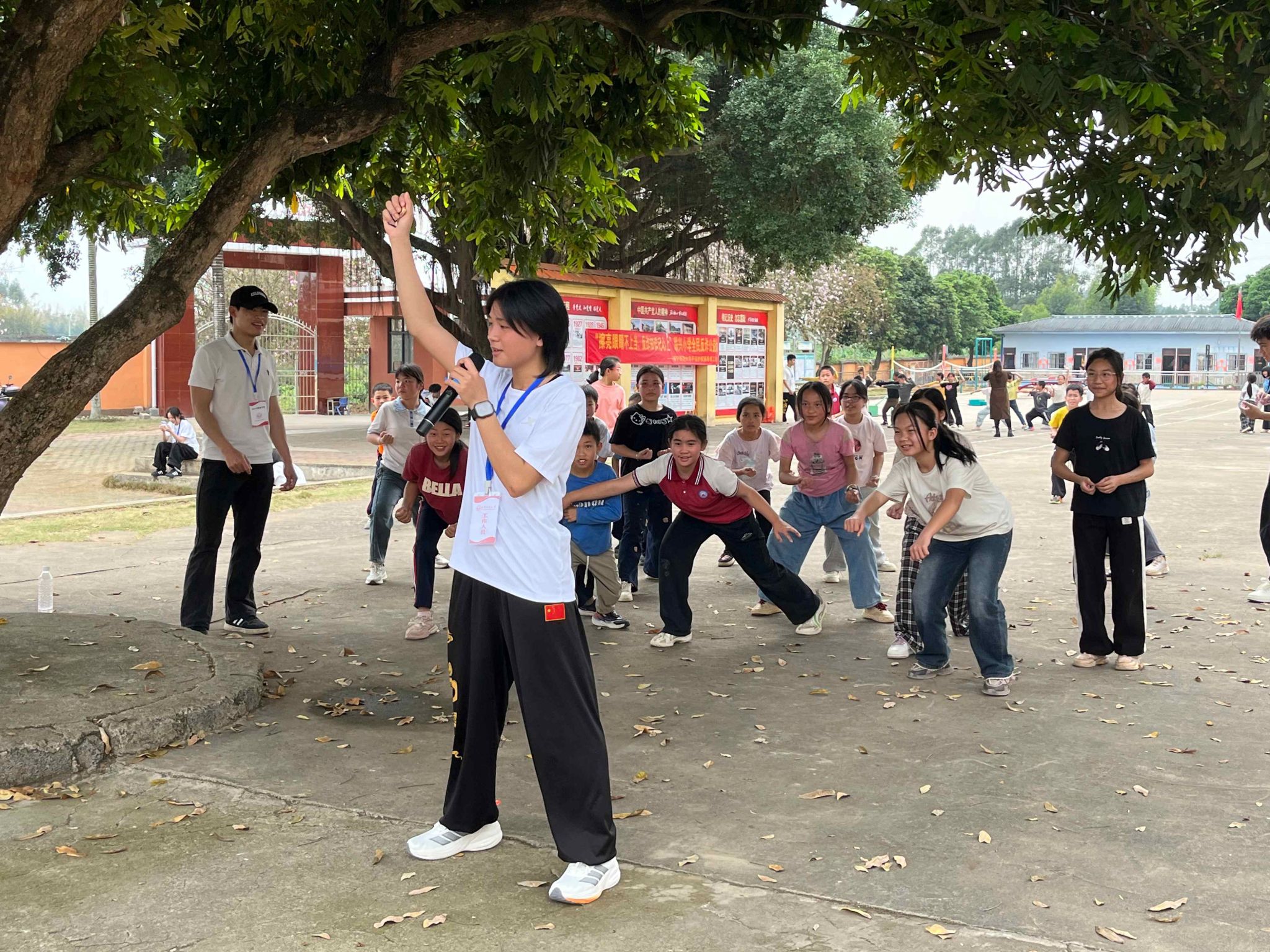 当天下午,志愿者们准时于学校东门集合,统一前往联兴小学。活动充分发挥学院体育专业特色,围绕“体育健康”“安全自护”“反诈宣传”三大主题,为小学生们设计了丰富有趣的课程内容。在“体育趣味课堂”中,志愿者们带领孩子们开展了一系列创意热身游戏与趣味运动,现场气氛活跃,欢声笑语不断;“安全健康教育”环节则通过情景模拟、知识问答等形式,向孩子们普及运动防护、健康生活常识,增强其安全意识;随后的“文体活动指导”中,志愿者们分组对孩子们进行篮球、武术等项目的耐心教学与互动,在运动中传递快乐与协作精神。