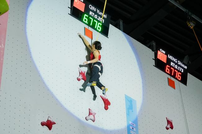 女子速度项目对决精彩纷呈。预赛排名第一的印度尼西亚名将德萨克·迈德·丽塔·库苏马·德维(Desak Made Rita Kusuma Dewi)一路领先,在半决赛与决赛中先后以 6.15 秒、6.07 秒两度刷新女子速度攀岩亚洲纪录并摘得金牌。奈飞
